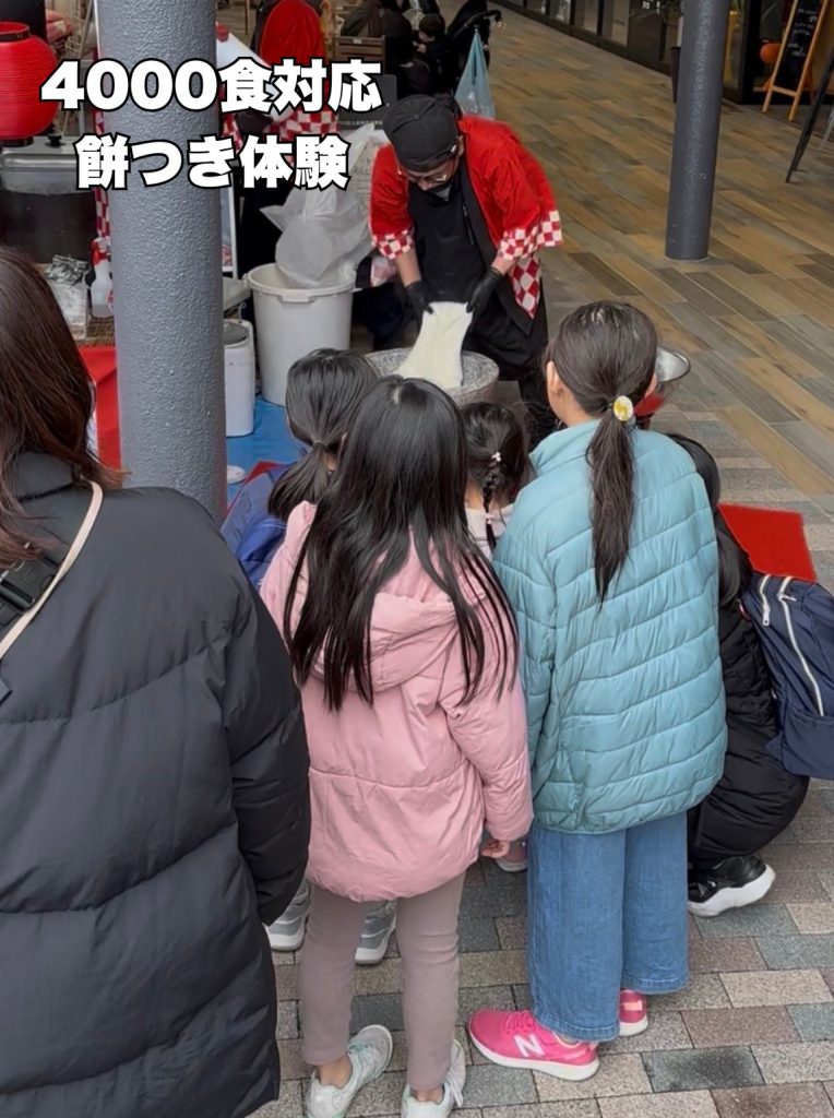 **来場者参加型の餅つき体験(約4000個)**を実施しました。
